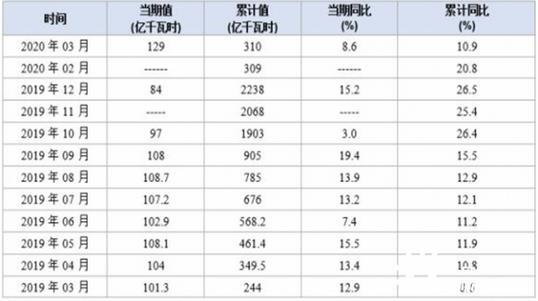 一季度,全国规模以上电厂发电量为1.58万亿千瓦时,同比下降6.8%,增速比上年同期降低11.0个百分点。全国水电、核电、并网风电和并网太阳能发电量分别为1963亿千瓦时、780亿千瓦时、1149亿千瓦时和528亿千瓦时,增速分别为-9.5%、1.2%、10.4%和20.3%,风电和太阳能发电量保持快速增长。